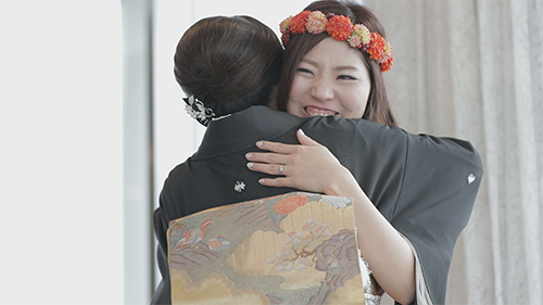 普段はなかなか面と向かって言えない日頃の感謝、ふたりの未来に向けての言葉。おふたりとも胸の内にある感情が込み上げ、あふれる涙。そんな感動的なシーンを、おふたりの背景をふまえ、映像でしっかり伝えられるよう撮影編集しました。笑いあり涙ありのおふたりらしいパーティーで、当日はおふたりもスクリーンでエンドロールをご覧になり、涙されていたのがとても印象的でした。